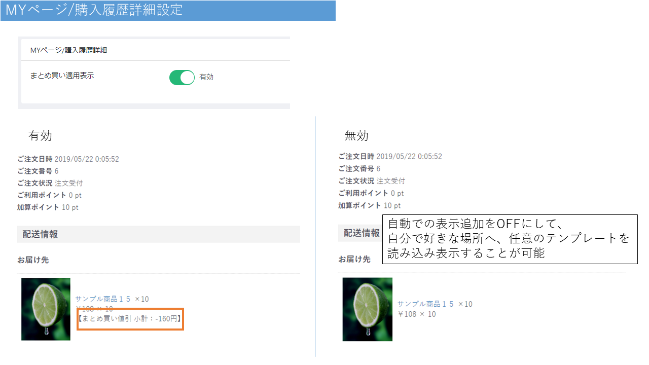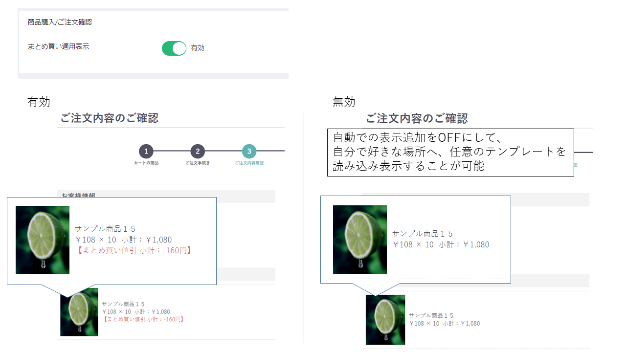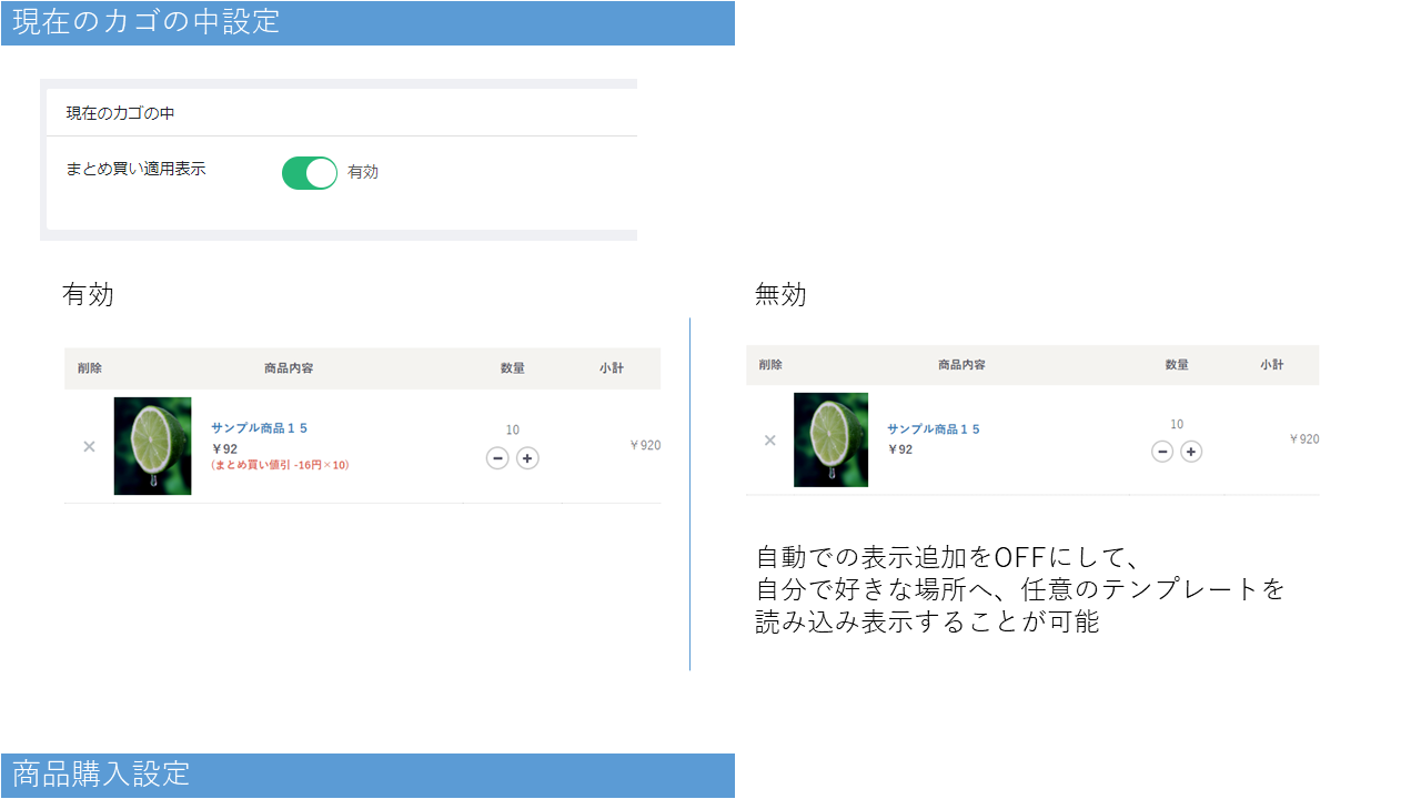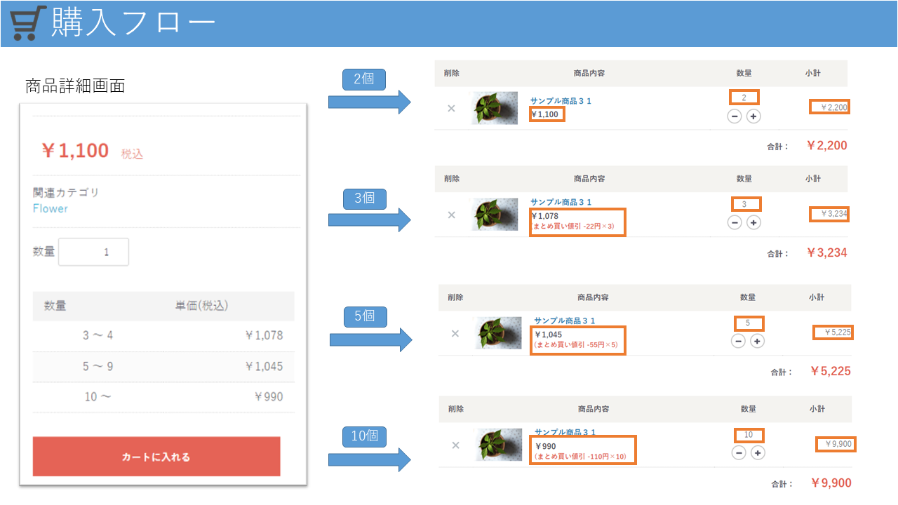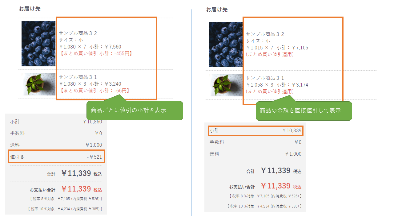 このプラグインは、こういった「まとめ買い」での値引きへ対応するプラグインになります。