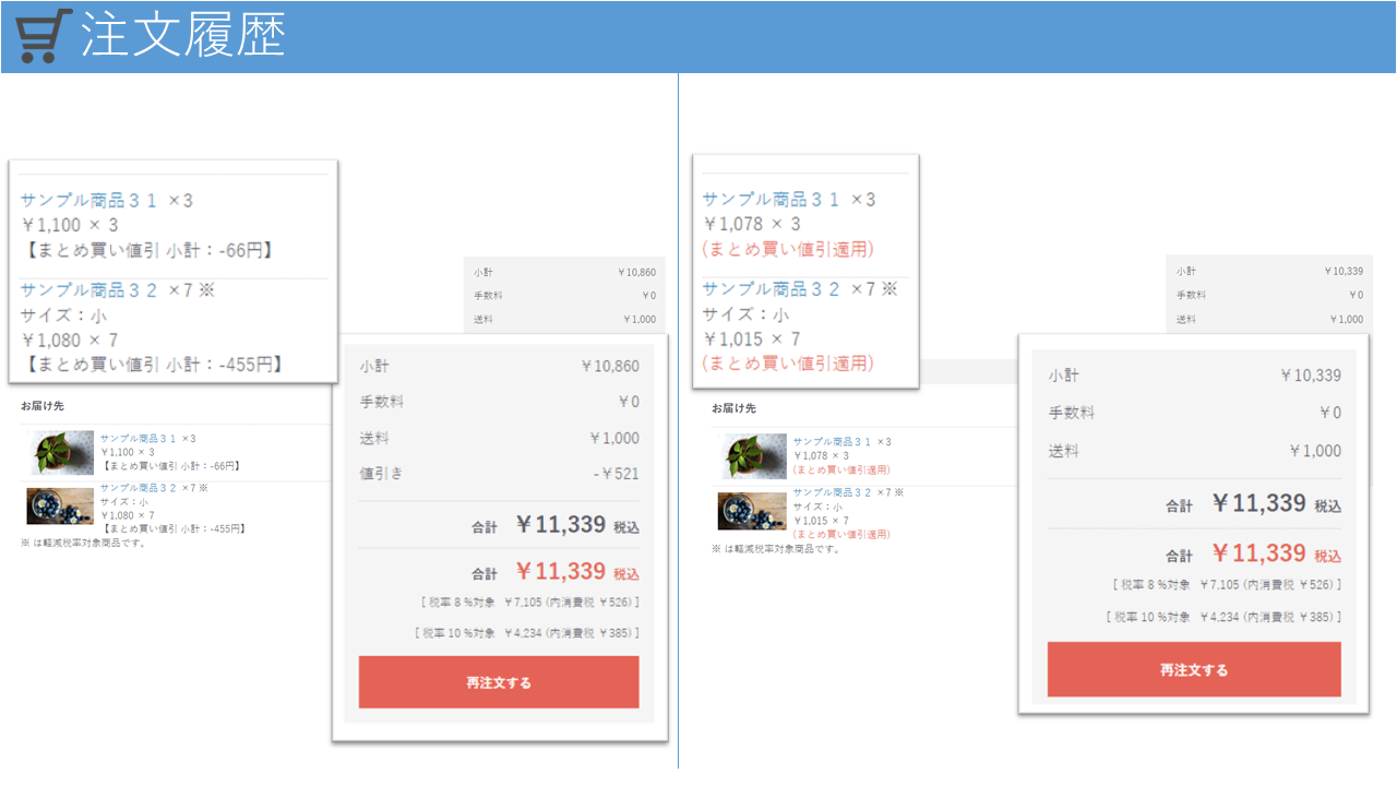※同一の商品を複数購入した場合の割引機能となります。