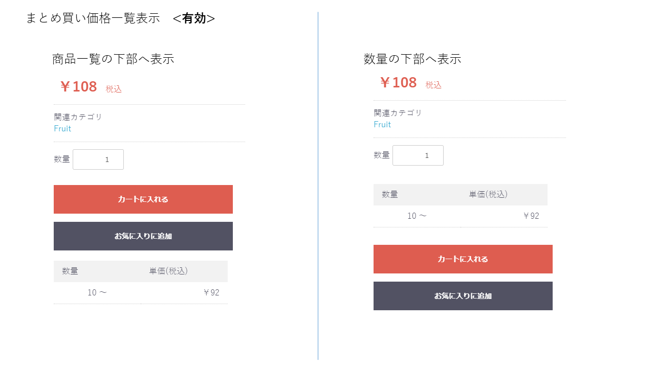通常の商品価格とは別に、まとめて購入を行った場合の価格を設定できるようになります。