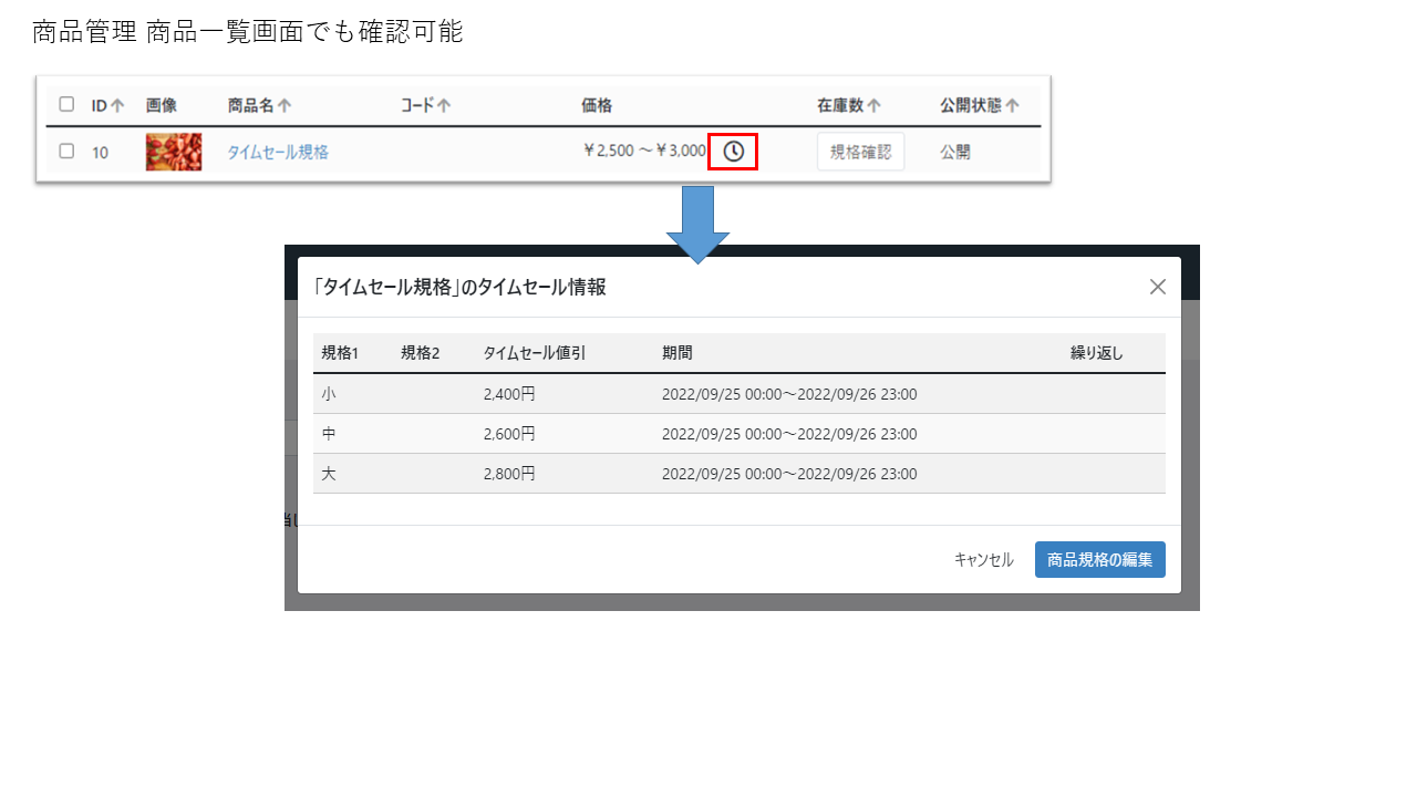 商品編集画面へ、タイムセールの期間・価格/割引 率設定が追加されます。